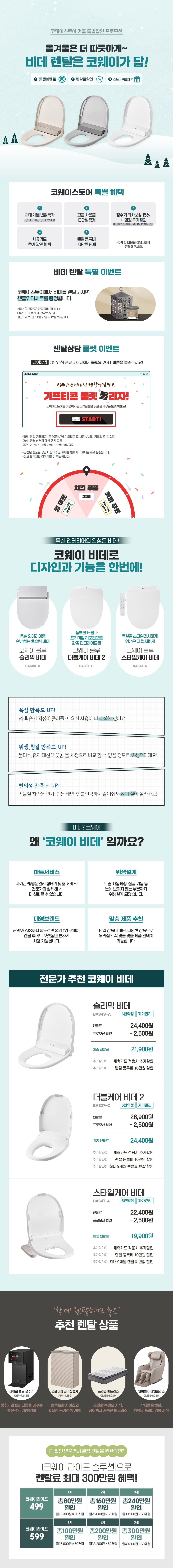 - 1. 2대 이상 구매 시 특약은 정수기, 비데, 청정기 등 회사가 정하는 모델을 대상으로 렌탈 또는 매매를 혼합하여 2대 이상 구성 시 적용됩니다.