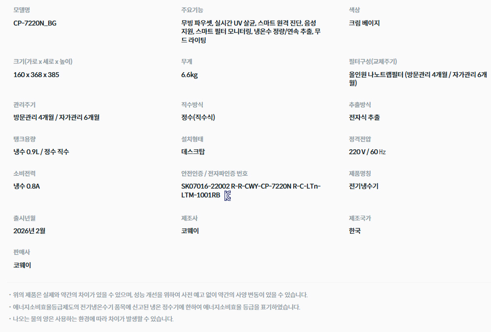 아이콘 정수기3 CHP-7220N